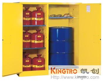 两用分区桶柜来容纳一个垂直的200升或110升桶以及一个最多可容纳12个19升安全罐的单独的隔间。两个隔间都有一个独立的自锁,三点锁闭门以便在火灾情况下提供最大限度的保护。当们关闭时闭锁系统自动启用。自闭型号配备有一个可熔的链环,在使用期间使们保持敞开并且一旦发生火灾在74度时融化以自动关闭柜门。包括蓄液槽上的滚轴,在罐子隔间中两个全尺寸搁板和在桶隔间中的一个半深搁板。坚固的1mm双壁钢结构。